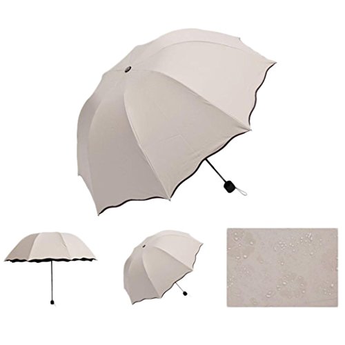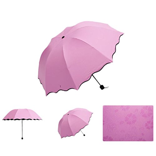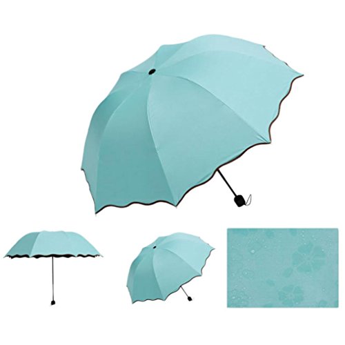 Product Description100% Brand new and high quality It appears beautiful flowers when the Umbrella surface meets water(as the picture shows, except the rainbow) Flouncing/Lotus leaves Elegant designed Sun/Rain/Wind umbrella can be used all weather For womens, mens, ladies, girls Foldable, Compact style with Umbrella bag Material: 100% Waterproof Polyester Material of Umbrella Frame: Alloy 8 Skeletons Package Included:1 x Umbrella0
