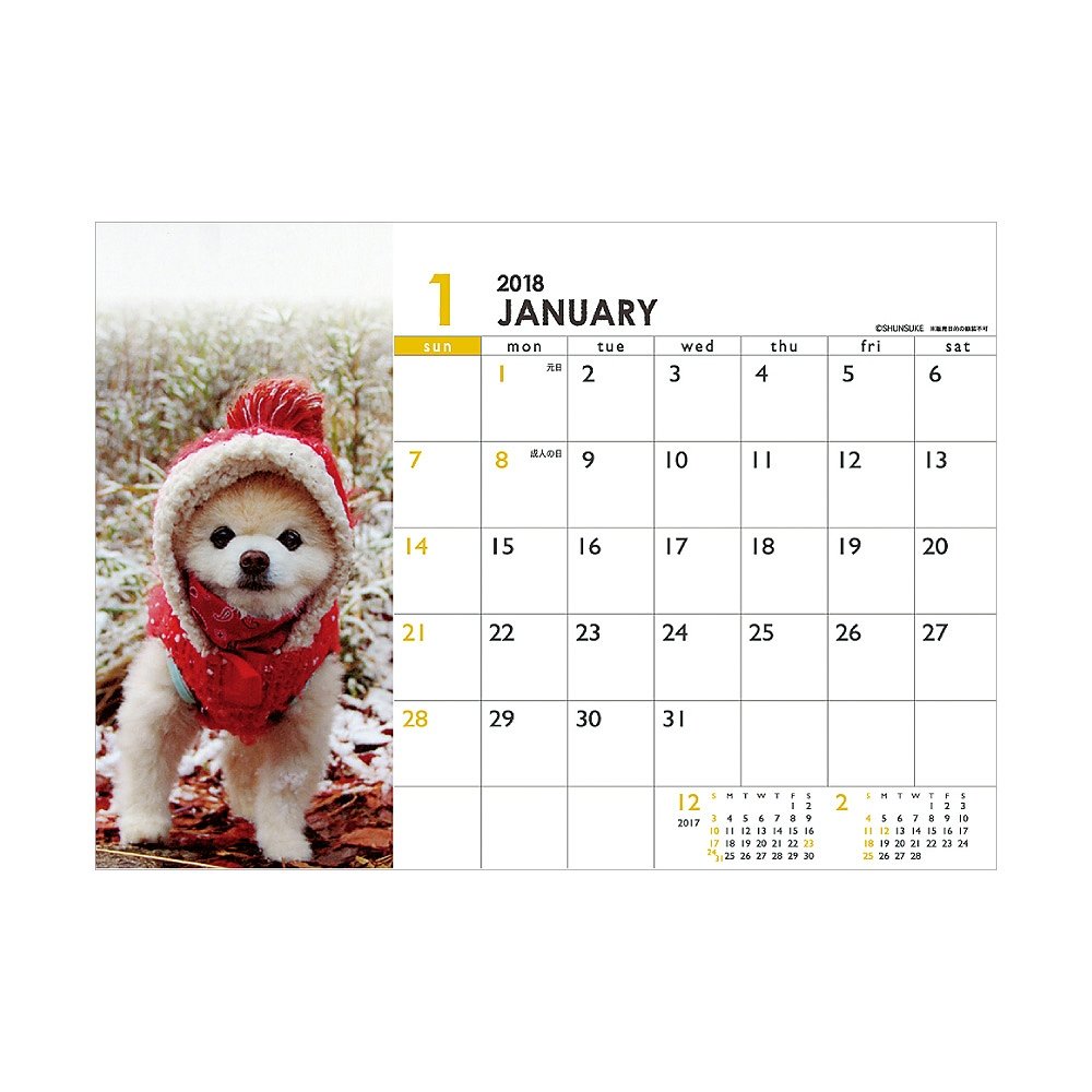 The cuteness like a stuffed animal is very popular on Twitter! It is a desk calendar of Pomeranian · Shunsuke of Shiba Inu cut.