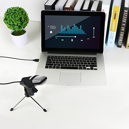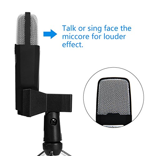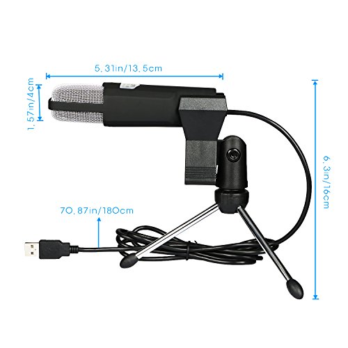 Attention: 1.To avoid buzz, please do not put the microphone near and towards the wall or any power source. 2.It can not compatible with IOS devices. Description: Sensitivity: -55db Impedance: less than 2.2k Operation Voltage: 1.5V Frequency Response: 50Hz - 16KHZ Sensitivity reduction: within -3db at 1V S/N ratio: More than 36db Cord Length: approx.2m Package Includes: 1 x USB Audio Jack Condenser Microphone 1 x Mini desktop tripod 1 x 2m cable Note: 1.USB aux jack condenser Microphone mic works with laptop PC computer of USB. 2.When recording, if there are noise, please put the microphone away from the amplifier to prevent recording noise due to amplifier. About Tonor Condenser Microphone: 1.The microphone is ideal for everything from studio vocals, to speech, instruments, podcasts, and desktop recording. The dynamic microphone element is designed for vocals and instruments, with a cardioid. pick-up pattern that isolates the main sound source and minimizes background noise, highlighting the performance. The Tonor MIC is smooth, extended frequency response is excellent for singing, speech, and instruments. 2.Great for Podcasts:The wide frequency response and focused pickup pattern are ideal for desktop recording, particularly podcasts. Use the Tonor microphone and included desktop mic stand to podcast over the Internet, create your own audio for video, or record your own songs.Feature
