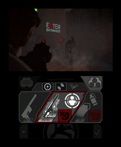 -. Feature : Step back into the shoes of rogue agent Sam Fisher and go deep behind enemy lines and infiltrate a terrorist plot. / Gameplay, Cinematic, Maps, HUD, Menus, Loading screens, and more are projected in the stereoscopic 3D of the 3DS. / New button mapping with the Slide Pad and Touch Pad gives the player seamless control to equip weapons and gadgets for more effective mission executions. / Protagonist Sam Fisher is equipped with enhanced weapons and better gadgets to infiltrate the enemy: new fusion goggles, OCP electronic disabling device, wall mine, more add-ons for the SC-20K r.i.f.l.e and more. / Lock picking is enhanced by utilizing the new Slide Pad to mimic the realism of lock picking. Hacking has also evolved from numeric codes to solving interactive 3D puzzles.