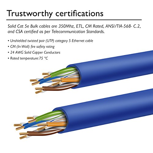 High Performance Cat 5e cable, ETL Listed, Bulk Ethernet Cable provides universal connectivity for wiring your home or office for high-speed network, in-wall rated (CM)