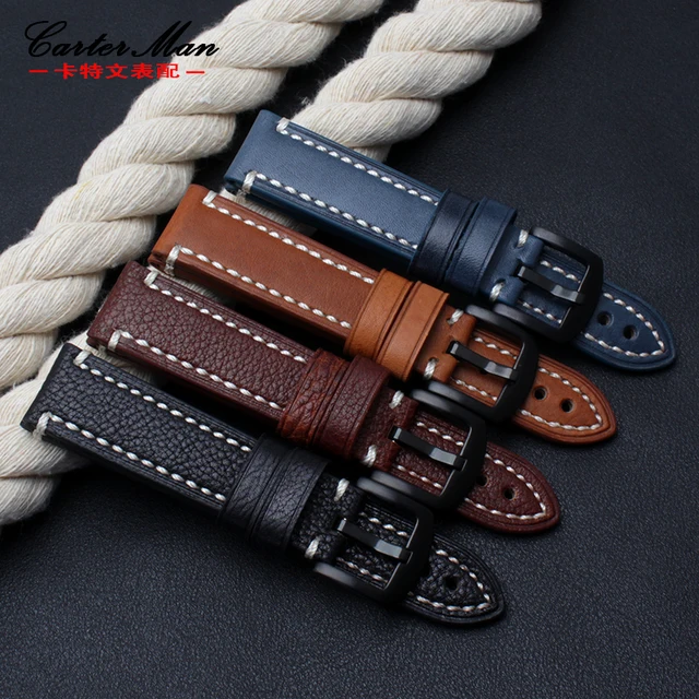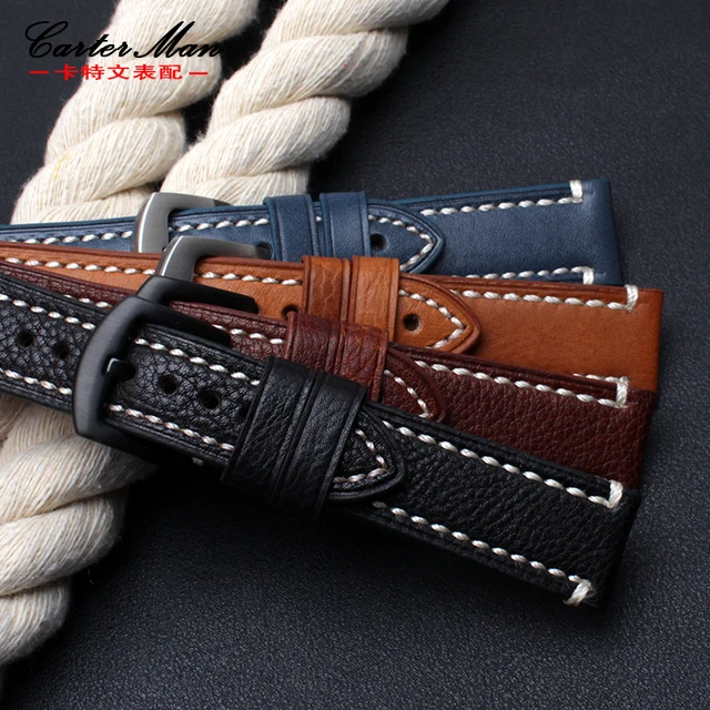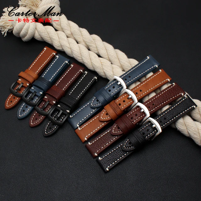 | [해외]18 미리메터 20 미리메터 22 미리메터 블루 가죽 시계 밴드 남성 여성 교체 가죽 시계 스트랩 시계 벨트 |