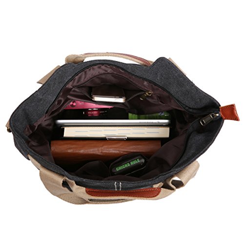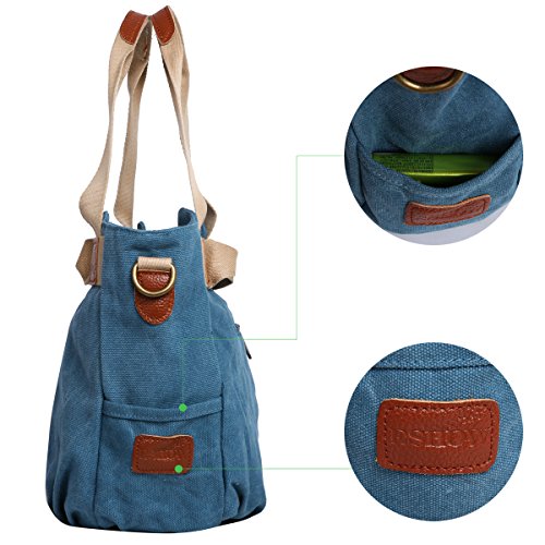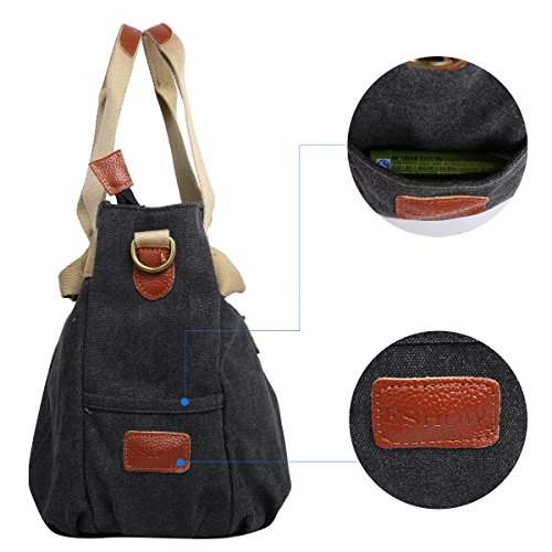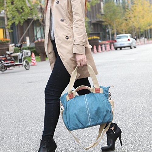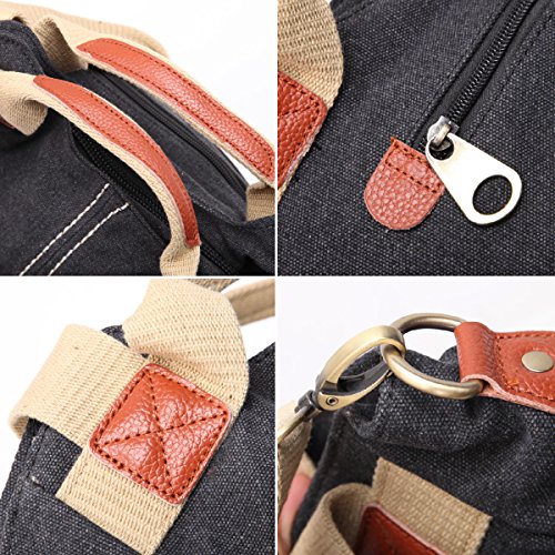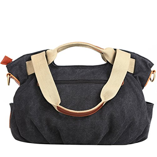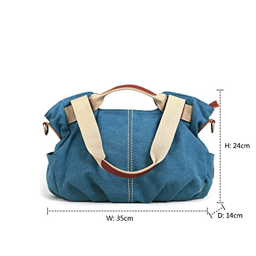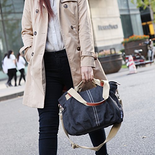 -. Feature : Material: Premium cotton canvas.Made of high density washed cotton canvas and, classical and fashion.Dimensions: 13.8" W x 9.4" H x 5.5" D / 100% leather trim,high grade hardware,adjustable and removeable shoulder strap for easy and comfortable carrying when you use it as a shoulder bag. / High quality nylon zipper,long life.Surrounded by two additional pockets on both sides for top-quality organization / excellent craftmanship,Nylon suture,bearing well. / Humanization design and multi-functional bag. It can be used as a shoulder bag ,a crossbody bag and a handbag. One bag offers at least three different ways of carrying.A great gift choice, it's fit for outdoor, travel, shopping, beach, school.