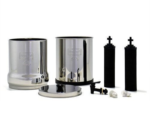 Premium Bundle Includes: Big Berkey stainless steel housing (Upper, Lower, Lid and spigot etc.), 2 Black Berkey Filters, and 2 Fluoride Elements and Silver Berkey Waterbottle.