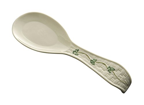 Belleek Pottery Shamrock Spoon Rest, Green/White