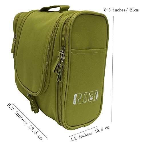 Product Description Color:Green Material: main material:300D polyester; insides:210D PU polyester, Waterproof anti-bacterial coating Size:8.3*4.15*9.2 inches/21*10.5*23.5cm Capacity:5.2L Use for:women and men Occasion:on business,living in hotels,outdoors,bathroom orgainzer.