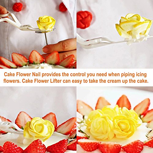 - FLOWER NAILS AND CAKE FLOWER LIFTER MAKE YOUR BAKING PERFECT. This cake piping nozzles set provides free flower nail and cake flower lifter, you needn't to buy anything at all while decorating cakes and cupcakes. We are also prepared Cake Nozzle Brush for cleaning nozzles. All items can clean safety - dishwasher safe