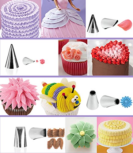 - PREMIUM AND VARIOUS CAKE NOZZLES: all kinds of cake nozzles meet your different demands for cake baking. Stainless steel, non-toxic, corrosion resistant, non-stick durable and reusable. Safe for all cake decorations, dessert and cookies. FDA and LFGB approved and good for parties, weddings, holidays and other events