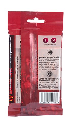 -. Feature : FIGHT GERMS: Did you know that your cell phone is one of the most germ-infested objects that comes into contact with your hands and face on a daily basis? Fight bacteria and viruses while keeping your phone and other device screens sparkling and fingerP.R.Int-free with our awesome Wireless Wipes! Maven Gifts has bundled together this 2-Pack of 12-wipe pouches in Pomegranate Citrus to help you save. / STREAK FREE: These nifty wipes are specifically designed to clean even the most sensitive of screen surfaces, so they are non-streaking and non-corrosive. Clean your phone as often as needed without the worry of water damage or spotty residue. / ANTI-BACTERIAL: Our pocket sized pouches pack quite a punch when it comes to fighting germs! Each wipe is saturated with our one-of-a-kind alcohol based sanitizer solution - the only known chemical cleaning composition that is safe to use on electronic devices. / TONS OF USES: The cleaning power of our Wireless Wipes is not just limited to your cell phone. They also work safely and efficiently on tablets, digital cameras, laptops, and eyeglasses! The formula is super fast-drying for a quick, on-the-go sanitizing solution. / PRODUCT SPECIFICATIONS: This bundle includes (2) pouches of 12 towelettes in a Pomegranate Citrus scent. Pouches measure 5.1" x 3.7" x 0.9" and weigh 2.4 oz. each.