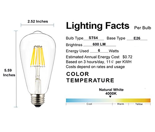 - 360 Degree Wide Beam Angle and Vintage Appearance, Neutral White Daylight Color(4000K), The color the bulb emits is not as dazzling as cold white, but much whiter than warm white
