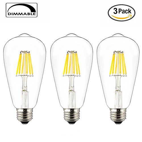 OPALRAY ST64/ST21 Classic Edison Style LED Filament Light Bulb, 6W Dimmable, Bright Neutral White Daylight(4000K), E26 Medium Base Lamp, 600Lm 60W Incandescent Equivalent, 3 Pack