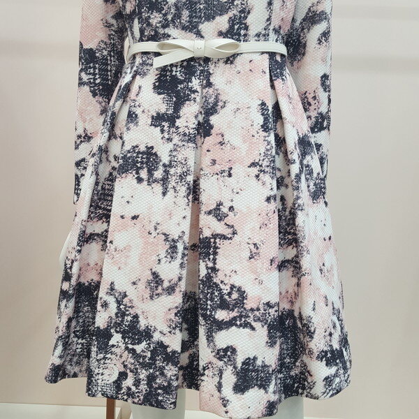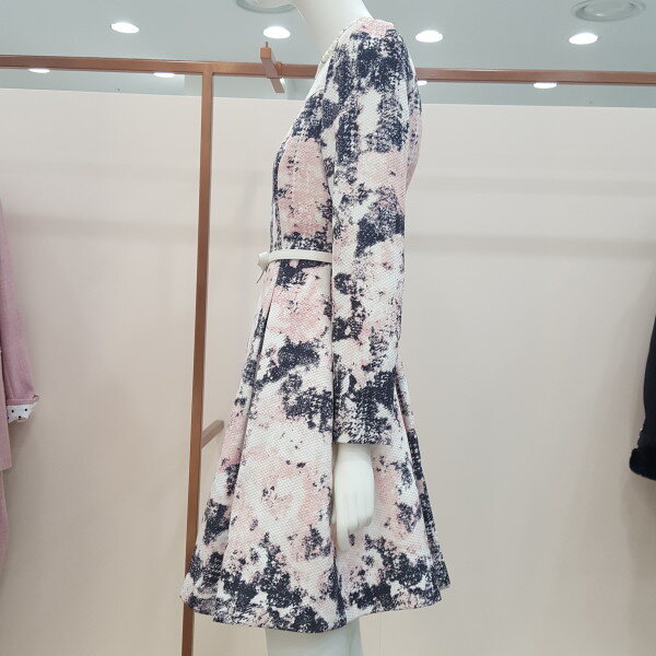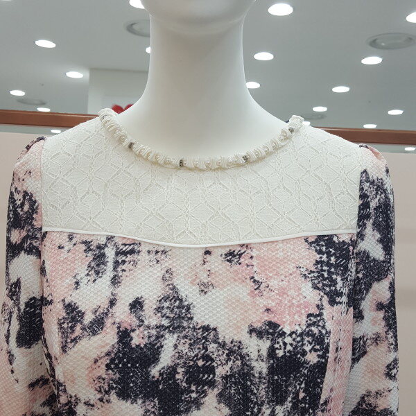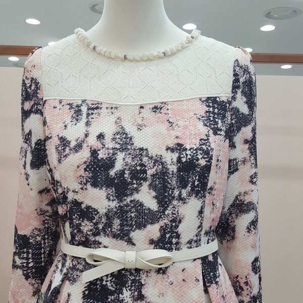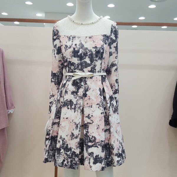A라인 주름 원피스 넥라인 진주장식으로 발랄함과 화사함
