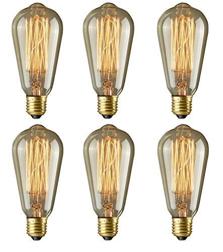 6 Pack Vintage Antique 60 Watt Edison Light Bulb E26/E27 Base Dimmable Filament Incandescent Bulbs