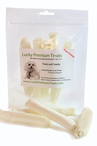 Plain Rawhide Chews for Medium Breed Dogs, Natural Dog Treats Made in USA Only by Lucky Premium Treats, 25 Chews