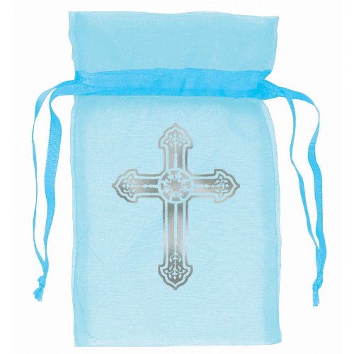 Studio : Amscan Publisher : Amscan Binding : Kitchen Product Description Whether you are celebrating a baptism, baby shower, or other special occasion, these elegant organza bags will be sure to add the perfect touch to your table setting. Package includes 12 baby blue bags with pull ties andfeature a silver cross printed on them. Great for mints, candy, and much more. Each bag measures approximately 2.5x4 inches. 0
