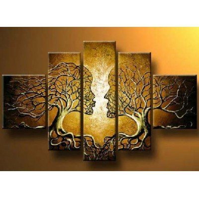 5 panels gallery wrapped brown abstract figures love canvas oil paintings wall art set ready to hang for home decorations wall decor, each panel has a black hook already mounted on the wooden bar for easy hanging out of box.