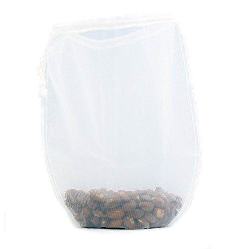 - THE PERFECT SIZE AND FIT FOR MANY USES A large 8.5" X 9.5" size Nut Milk Bag with a rounded bottom and drawstring makes these strainer bags fit perfectly over most bowls and containers – easy to pour and squeeze without a mess. Make wholesome, additive-free plant-based milks of all kinds including nut, soy, or rice, pulp-free organic fruit and vegetable juices, cold brew coffee, steeped teas, cultured nut cheeses, sprouts, and more! Make juice in your blender!