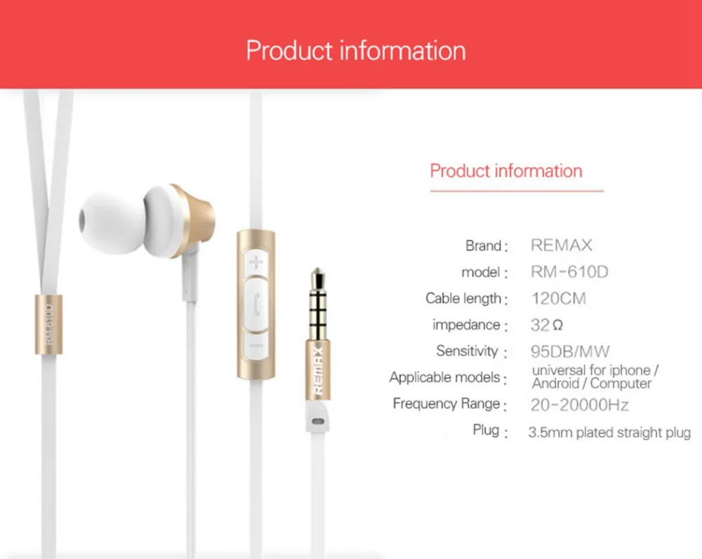 Model Number:Original Remax Rm 610d Earphone