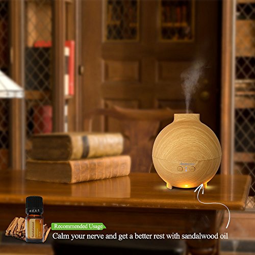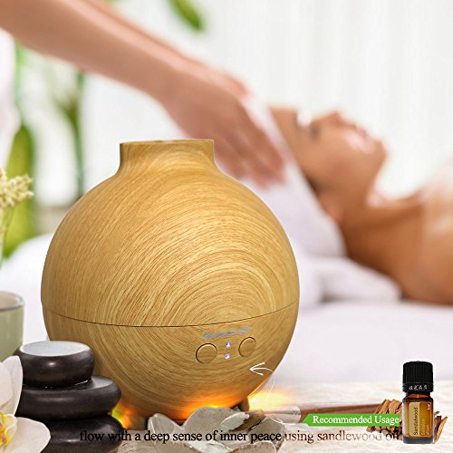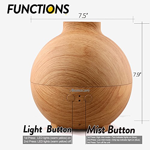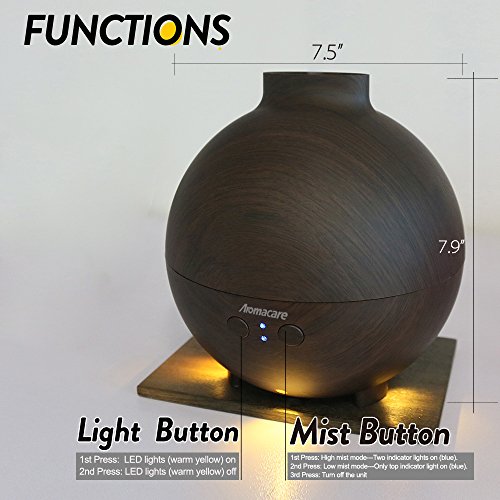 Large Essential Oil Aroma Diffuser 600ML , Aromatherapy Cool Mist Humidifier, Ultrasonic Nebulizer- Ultra Quiet- Globe- Wood Grain- Filter Free-Last Overnight by Aromacare