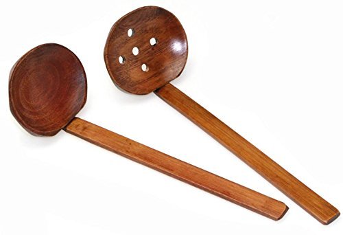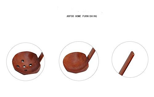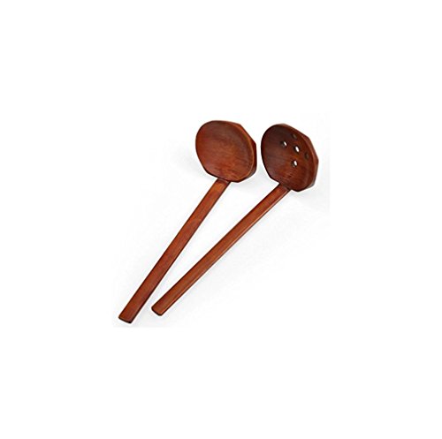 Pulaisen Wooden Soup Colander Spoon - Precision Kitchenware Nanmu Wood Special Ramen Noodles Spoon Ladle, Set of 2