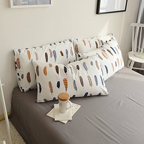 BuLuTu Cotton Feather Print Bed Pillowcases Set of 2 Queen White Pillow Covers Decorative Standard For Kids Adults Envelope Closure End (2 Pieces,20"×26")