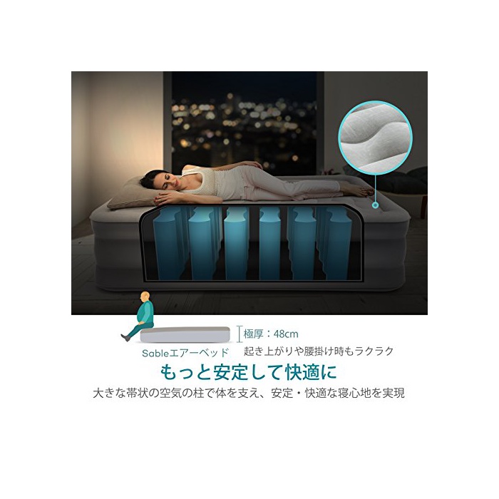 에어 베드 Sable 더블 사이즈 (203×138×두께48cm) 전동 펌프 내장 공기 베드 에어 매트 고반발 숙박객 낮잠 콤팩트 스페이스 활용 SA-HF005