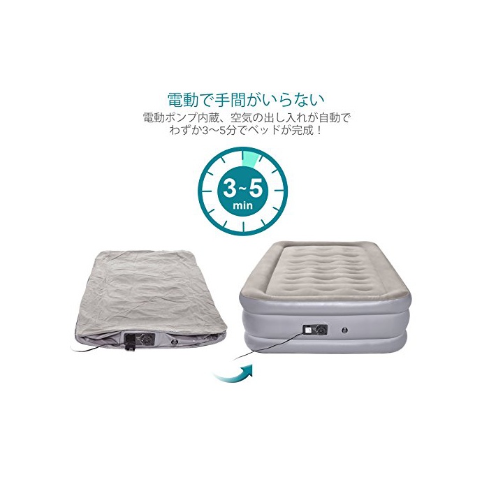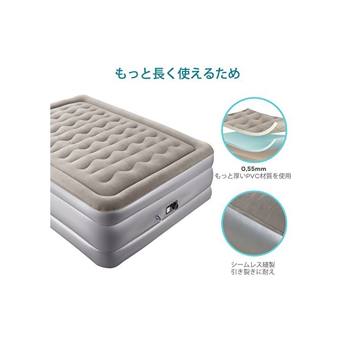 쾌적한 잘 때의 기분을 실현:커다란 띠 모양의 공기의 기둥에 몸을 떠받치고, 체압분산에 의해 몸에의 부담을 경감하고, 촉감이 좋은 소프트 frock 가공으로 쾌적한 잘 때의 기분을 실현 합니다.높이가 50cm 있고, 일어나도 손쉽게(간단히) 나와 옵니다.