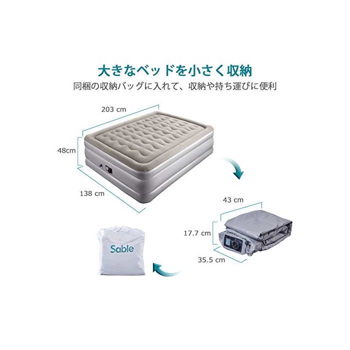 원본상품명: エア?ベッド Sable ダブルサイズ (203×138×厚さ48cm) 電動ポンプ?? 空?ベッド エア?マット 高反? 宿泊客 お?? コンパクト スペ?ス活用 SA-HF005