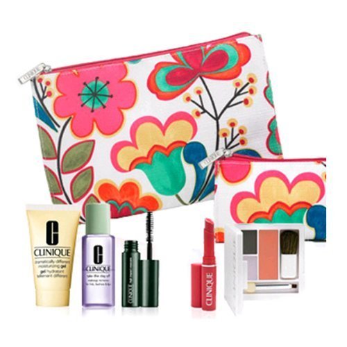 Title : Brand New Clinique 2012 Fall 7 Pcs Gift Set: Dramatically Different Moisturizing Gel, Colour Surge Eye Shadow Duo with Soft-pressed Powder Blusher, High Impact Mascara, Take the Day Off Makeup Remover, Almost Lipstick in Fliity Honey and Two Floral Cosmetics Bags. 65 Value