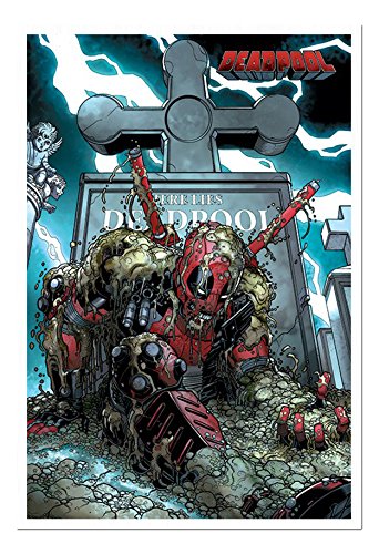 -. Title : Deadpool Here Lies Deadpool Grave Poster Magnetic Notice Board White Framed - 96.5 x 66 cms (Approx 38 x 26 inches)