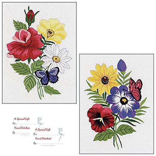 Janlynn - Floral Arrangements - Crewel Embroidery - 2 Kits: Floral and Butterfly, 5 by 7 Inches Each with 2 Gift Cards