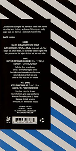 -. Binding : Health and Beauty -. Brand : Baxter of California -. Department : unisex -. EAN : 0838364005085 -. Feature : Super Close Shave Formula, After Shave Balm, and a high-quality badger shaving brush for a traditional wet shave. -. IsAdultProduct : 0 -. Label : Baxter of California -. Manufacturer : Baxter of California -. Model : 838364005085 -. MPN : C-SHAVE123 -. NumberOfItems : 1 -. PackageQuantity : 1 -. PartNumber : C-SHAVE123 -. ProductGroup : Prestige Beauty -. ProductTypeName : LUXURY_BEAUTY -. Publisher : Baxter of California -. ReleaseDate : 2015-02-01 -. Studio : Baxter of California -. Title : Baxter of California Shave 1.2.3 Kit -. UPC : 838364005085