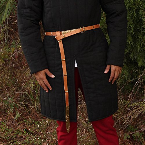 Binding : Apparel Product Description The design of this belt is owed to the famous medieval poet Geoffrey Chaucer. It is just like one you would have worn during Chaucer's time. It is meant to hang long and knotted at the waist. Made from tan leather with brass accents it is to die for. Well maybe not die but close. The buckle features a dragon like the one from Chaucer's tale Sir Eglamour of Artois. There are brass bar studs spaced down the belt to the chape. The top has a bird like in the Parliament of Foules with the bottom section featuring Chaucer himself going about his business. Pair this belt with any period costume for pure perfection. 0