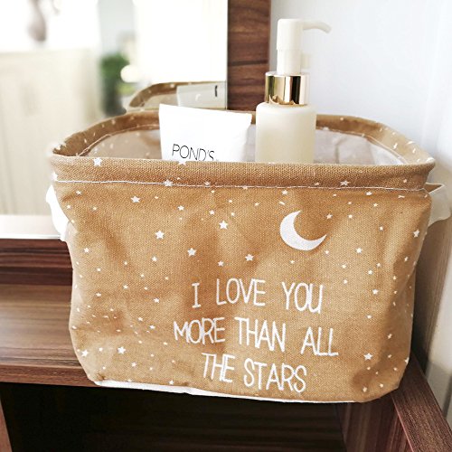 Storage Basket Storage Bin Storage Cube Organizer Basket Small with Handle Canvas Fabric Collapsible Stars Moon (7.87 x 6.3 x 5.1inch) ASAPS