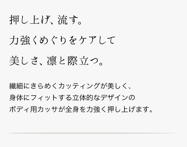 押し上げる動きでめぐりをケアし、全身を洗練された美しさへと導きます。