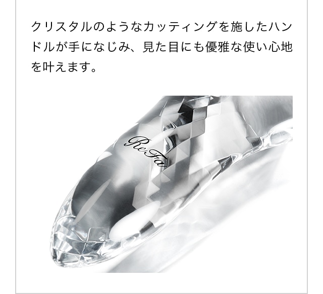 クリスタルのようなカッティングを施したハンドルが手になじみ、見た目にも優雅な使い心地を叶えます。