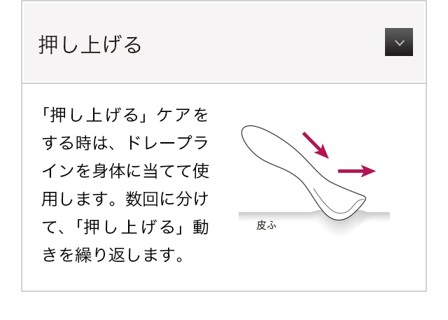 プロの手技、「プレッシオン※」と「ドレナージュ※」を掛け合わせた押し上げる動きを再現。