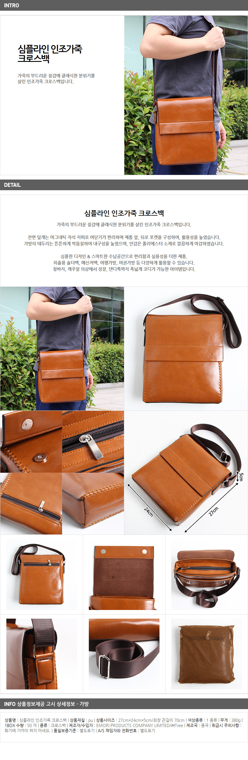 Men's Artificial Leather Cross Back Men Classic Simple Line