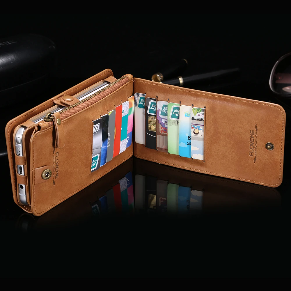 Features:FLOVEME Retro Leather Wallet Mobile Phone Case Bag