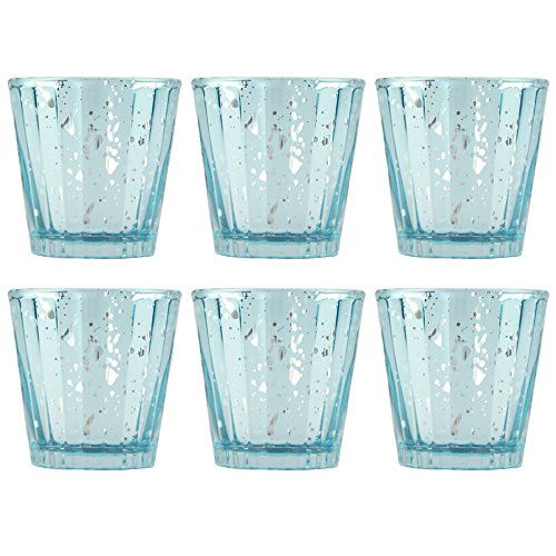 Set of Six Blue Mercury Glass Votive Candle Holders