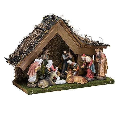 Kurt Adler 9-1/2-Inch Musical LED Nativity Set with Figures and Stable