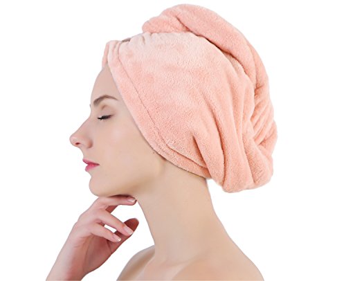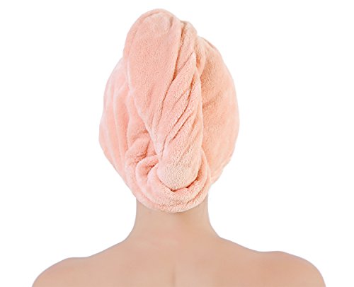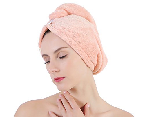 HOW TO USE? (3 Steps) 1. Bend to make your hair hang down, put hair towel on your head (the end with button); 2. Wrap your hair with the hanging part of the towel and twist around the hair; 3. Pull up the secure loop across your head and fix it under the secure button.