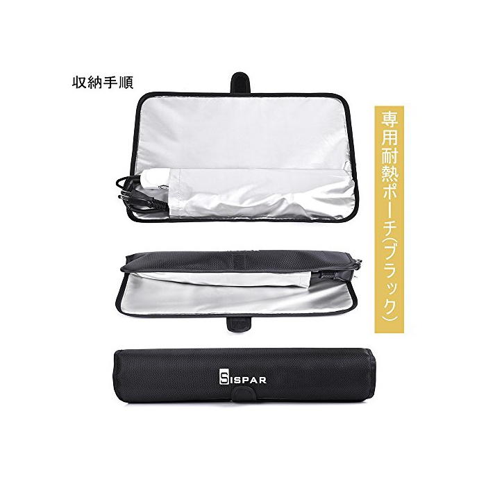 SISPAR 헤어아이런(고데기) 전용 내열 파우치 수납 커버 전집류 헤어아이런(고데기) 수납 가능 코드 수납 여행 출장 운반 편리 【2 매블랙】