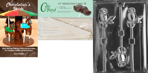 Cybrtrayd 'Long Stem Rose Lolly' Fruits and Vegetables Chocolate Candy Mold with 25 4.5-Inch Lollipop Sticks and Chocolatier's Guide