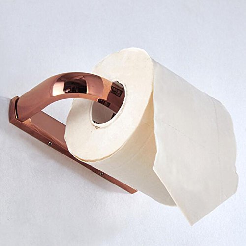 7Trees Brief Design Half Open Single Rail Toilet Roll Paper Holder Wall Mounted Brass Material Convenient Toilet Tissue Holder (Rose Gold)
