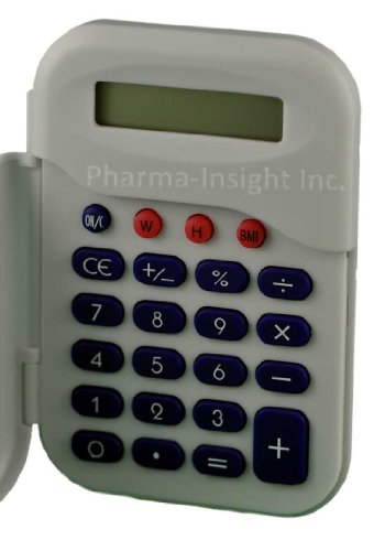 -. Binding : Health and Beauty -. Brand : Unknown -. Color : white -. EAN : 0627843207634 -. Feature : BMI (Body Mass Index) calculator (bmi calculator) lbs & inches or kg and meters / Inputs can be switched from inches and pounds or centimeters and kilograms user selectable / Will calculate BMI for adults and children and can be used for bariatric patients since it goes to 699lbs / Quick and easy and portable with cover / Portable,hand held,electronic,battery operated,easy to use -. IsAdultProduct : 0 -. Label : Pharma-Insight Inc. -. Manufacturer : Pharma-Insight Inc. -. MPN : PI2109BMI -. PackageQuantity : 1 -. PartNumber : PI2109BMI -. ProductGroup : Health and Beauty -. ProductTypeName : HEALTH_PERSONAL_CARE -. Publisher : Pharma-Insight Inc. -. Studio : Pharma-Insight Inc. -. Title : BMI calculator (Body Mass Index) compact metric and imperial -. UPC : 627843207634