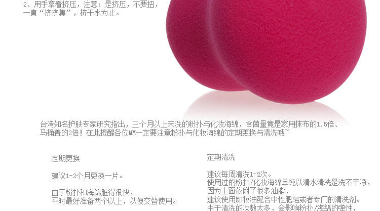 | 使用方法 | 1.湿用-洗脸时小葫芦来帮助面部清洁污垢 用葫芦压妆的时候注意以下2点,那么吃妆问题就可以很好解决~ | |