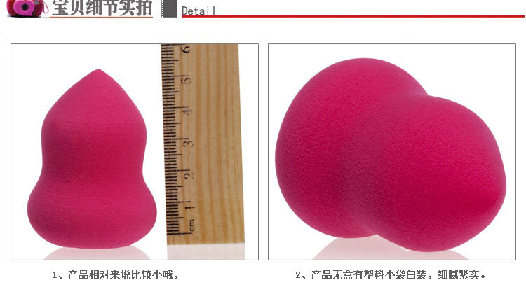 | 产品介绍 | 尖头的位置连最难上到的鼻翼缝隙的位置都可以完美的填补粉底 设计理念是针对精细和难以顾及到的面部区域,它的尖端适合眼睑,睫毛已经皮肤纹理的深处而它的尾端可以很好的跟脸部轮廓相贴和,可以肯定的说:不是一般的粉底液海绵,它容易控制粉底分量,使粉底能够均匀涂于表面,效果服帖自然 不含有乳胶,因此对皮肤不过敏,适合任何皮肤,含有丰富的维他命E,促进皮肤吸收营养,保持水分,抗油,不会把皮肤外层保护油摸一并擦掉,该品是亲水性材质,遇水易吸收,速度快本身能膨胀,挤掉水后复原,采用进口高分子技术,绵面更加柔韧细滑,可反复使用后也不掉屑 | |