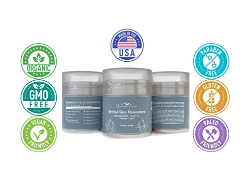 Organic Gluten-Free Facial Moisturizer by NatureFace | Non-Comedogenic Moisturizer for Dry Skin, Oily Skin, Sensitive Skin | Rosacea Treatment, Eczema, Psoriasis, Dermatitis, Skin Rash, Skin Redness