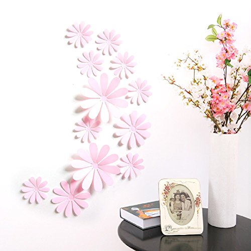 Amaonm 24 PCS Cute 3D DIY Flowers Wall Decals Removale Home art Decor Flowers Wall Stickers Murals for Kids Girls room Bedroom Weeding party Birthday Shop Windows Decorations (Pink)